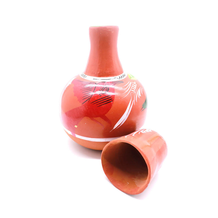 Decorative Traditional Clay Jar with Cup Mexican. Assorted colors, natural earthy paint. Handmade product. Made in Mexico. Dimensions 11.8x8.2"