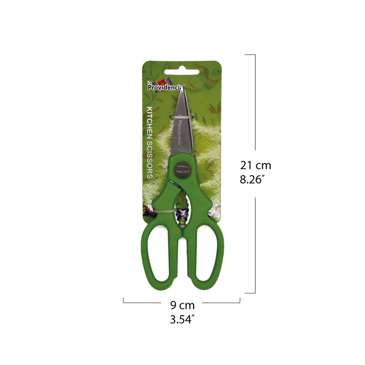 Kitchen Scissors made of stainless steel. Easy to clean and resistant to breakage and corrosion. The ergonomic handle is easy to grip. Made in China. Dimensions: 8.2x3.5".